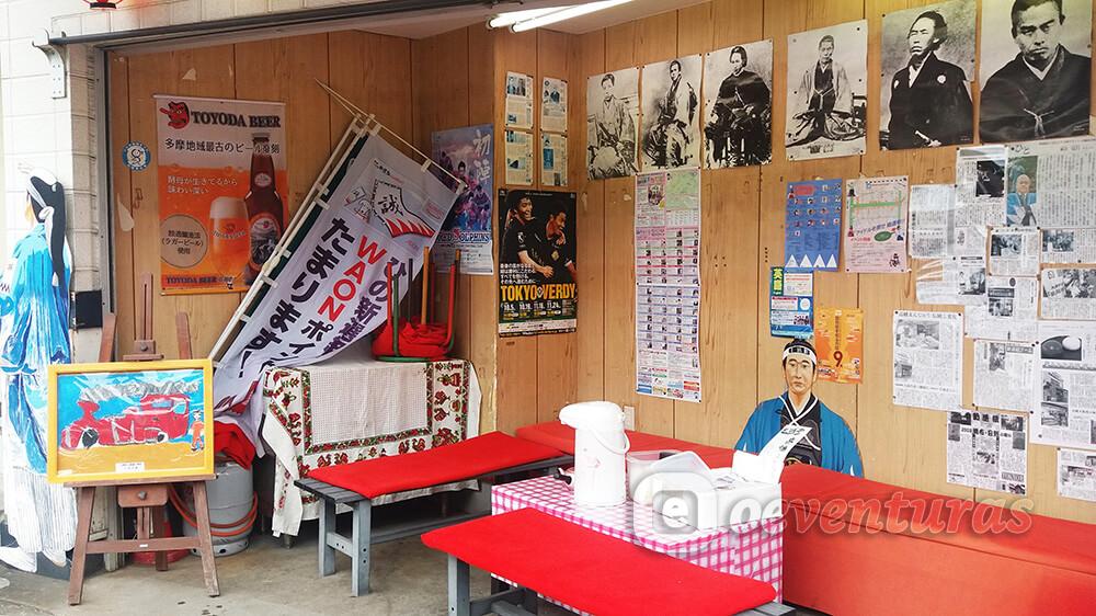 Cuando pusimos rumbo al siguiente punto pasamos por delante de una especie de zona de descanso la cual estaba decorada con imágenes del Shinsengumi y cubierta de fotografías de las figuras históricas más importantes del periodo Bakumatsu (1853 – 1867) y recortes del periódico sobre la ciudad.